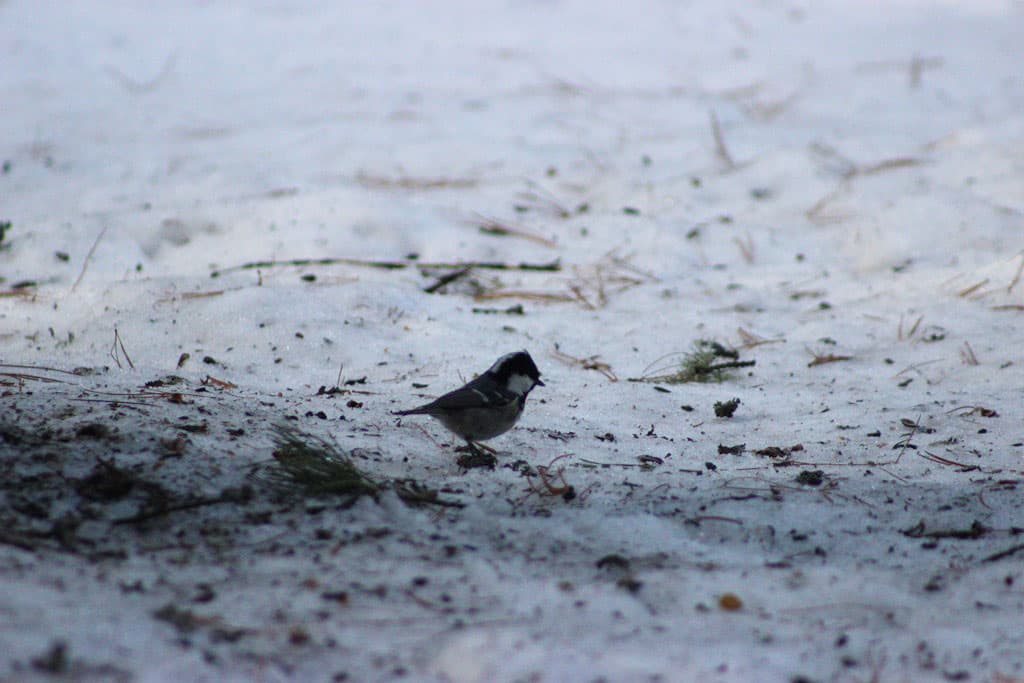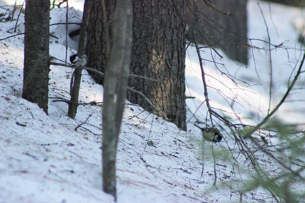В лесу птицы держатся сейчас не стаями, а поодиночке. Причём часто видишь рядом разные виды птиц, отыскивающих корм на снегу.