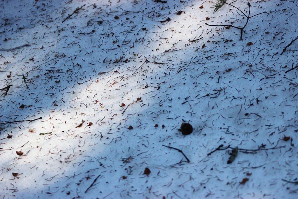 В эти дни, дни активной потайки снежных сугробов, природа может меняться каждый день. Вчера ещё поверхность снега была белой и чистой, а сегодня уже вся в кусочках коры, обломках веток, кожуре от семян, хвоинках, семенах растений. И это только видишь с первого взгляда.