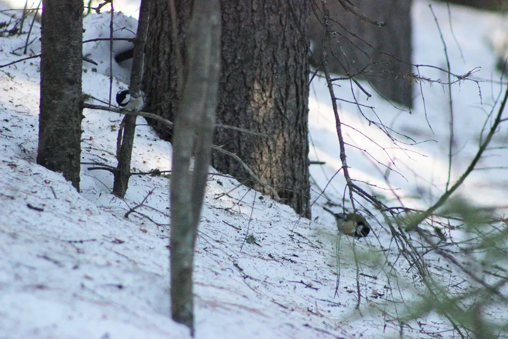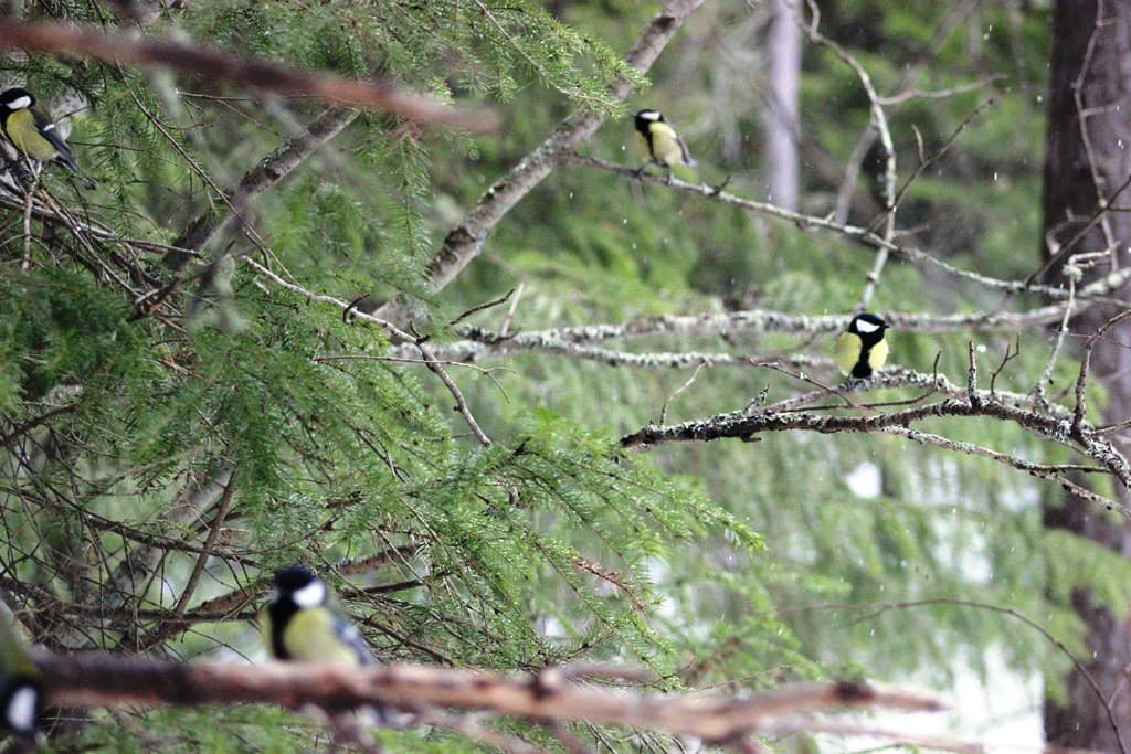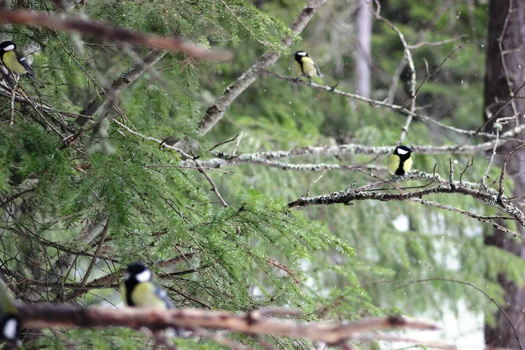 Но численность больших синиц у кормушек только увеличилась, здесь их можно видеть стайками до 20 особей.