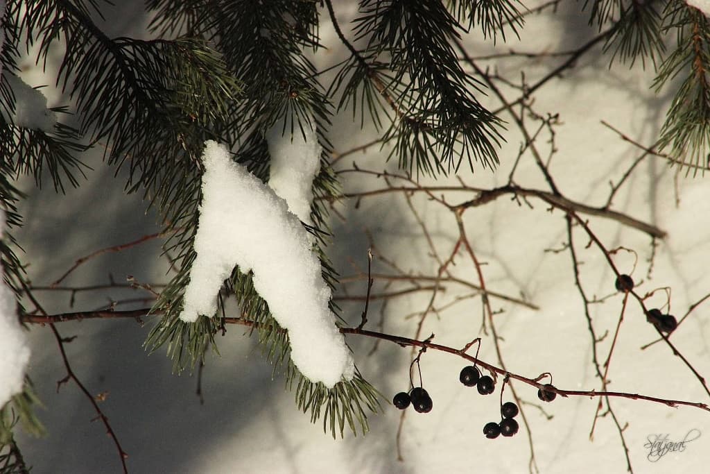 Широкие ветви ели («лапы») очень пружинистые, поэтому под тяжестью снега они гнутся к земле, но никогда не ломаются.