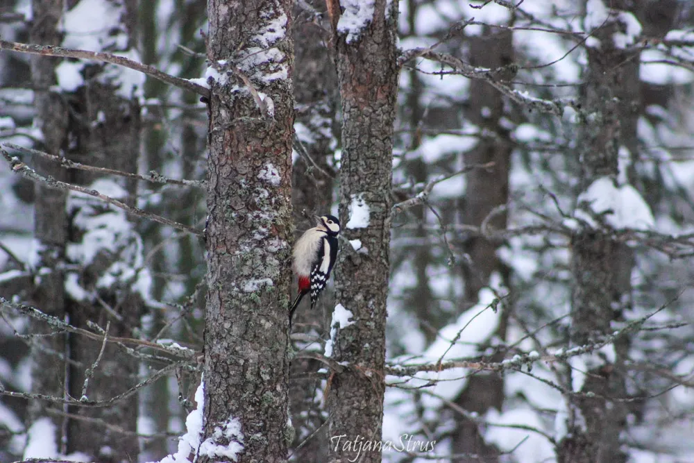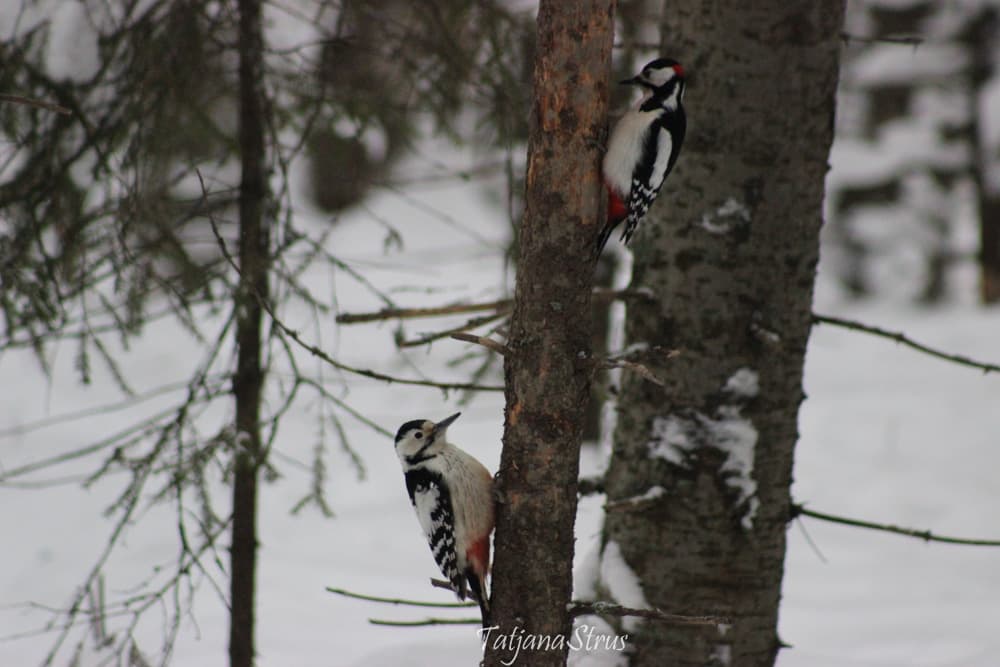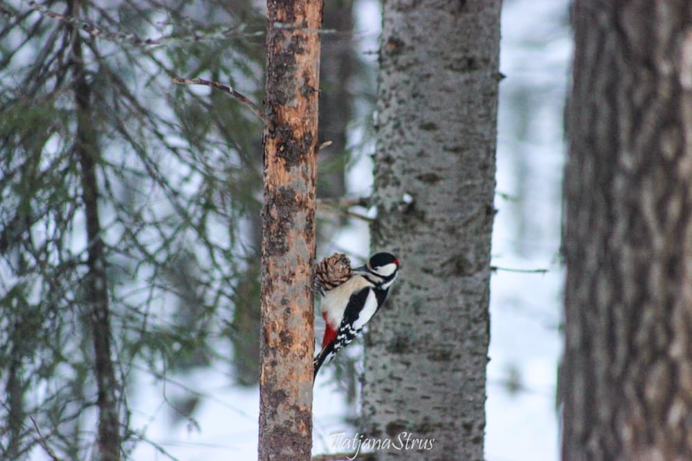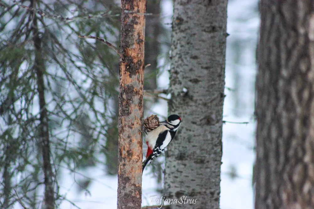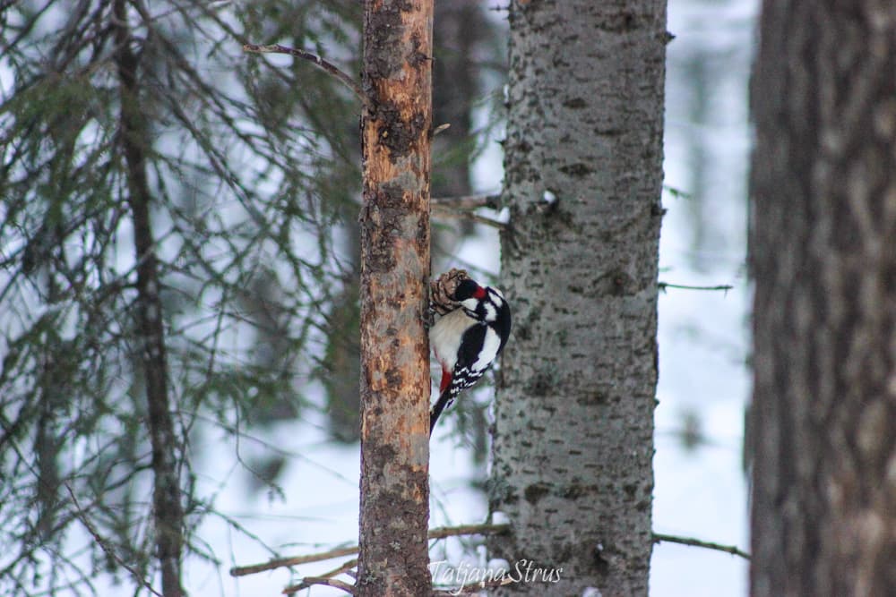 И хотя в источниках указано, что белоспинные дятлы «в отличие от других дятлов», шишек не долбят, то прилетевшие явно не относились к таковым.