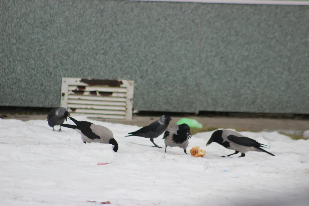 Серых ворон можно видеть отдыхающими на крышах зданий, на ветках деревьев, копошащихся в снегу, неторопливо вышагивающих по дорогам и тротуарам. Серые вороны вытеснили с зоны видимости европейскую сороку, ранее сорок можно было часто видеть наблюдающих за жизнью города с верхушек деревьев и зданий. Но с воронами ладят более мелкие представители врановых — галки.