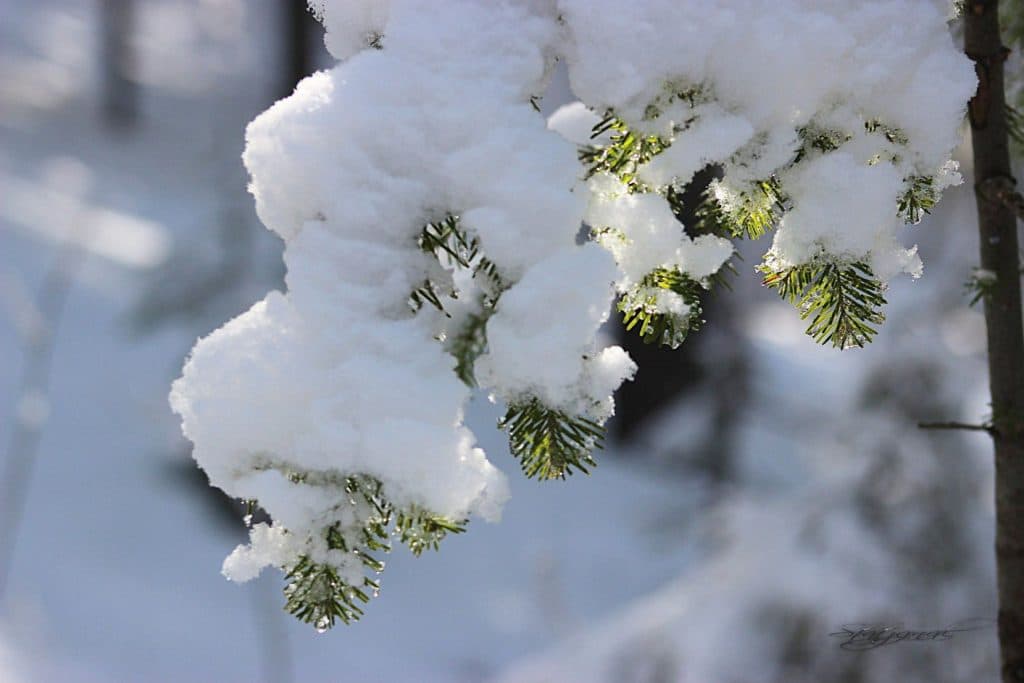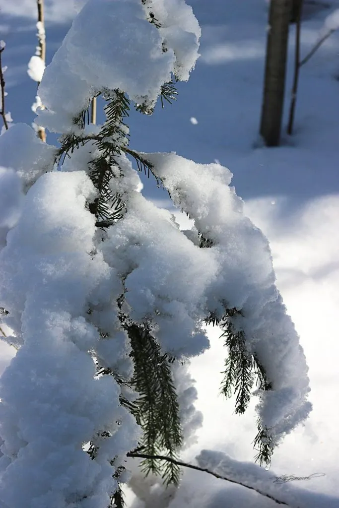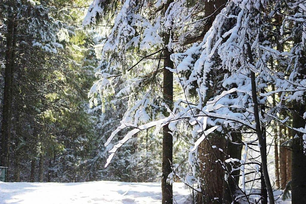 Накануне выпавший снег накрыл весь лес снегом, он лежал на ветках деревьев плотным, мокрым слоем.