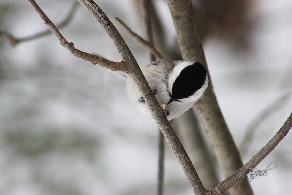 Зато, постоянные обитатели наших кормушек, одни из которых буроголовые гаички, как всегда на месте. Обхватив ветку длинными гибкими пальцами с острыми коготками гаичка прислушивается к шуму леса и приглядывается.