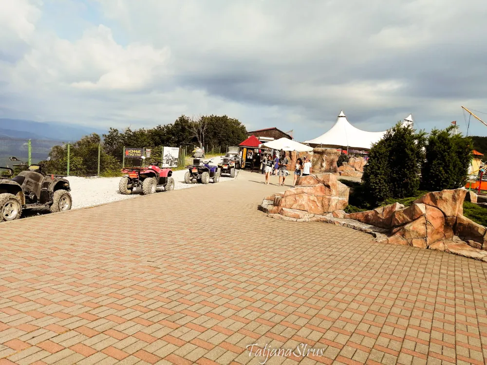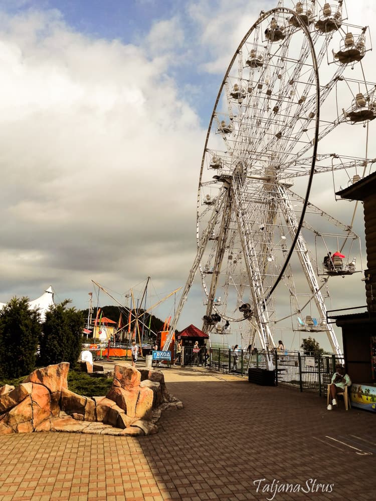 На вершине парка отдыха «Олимп» различные аттракционы, развлечения, магазинчики с сувенирами.