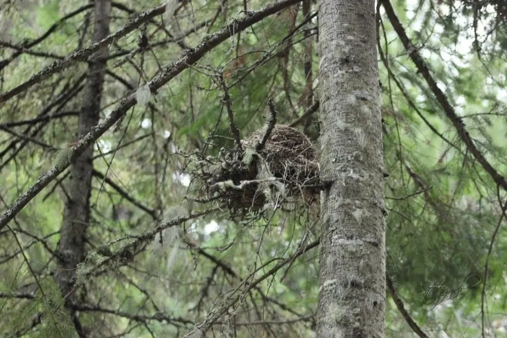 До весны покинутое птицами гнездо. Весной, с прилётом перелётных птиц, оживится лес многочисленным птичьим пением.