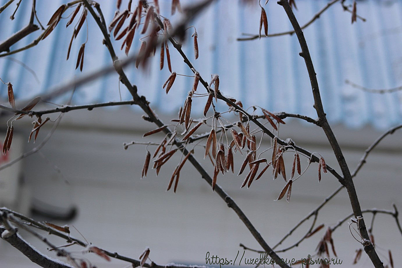 Но в городе изморози меньше, хорошо просматриваются стручки акации без семян.