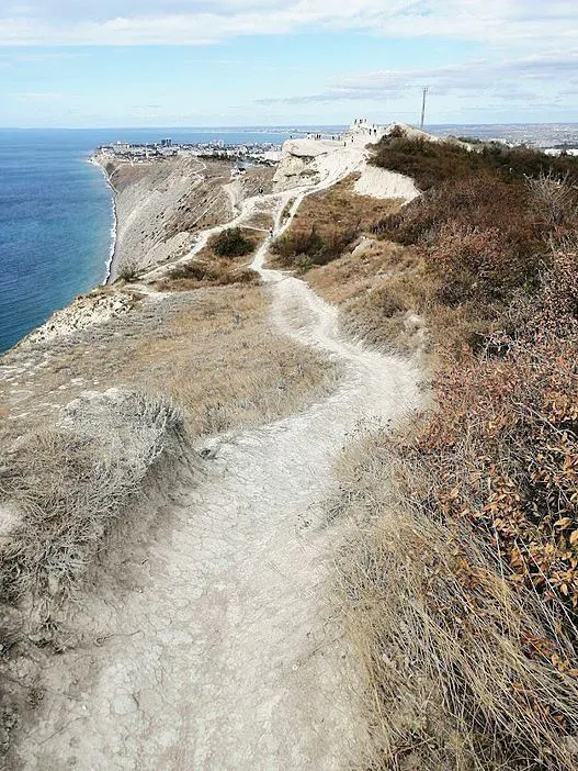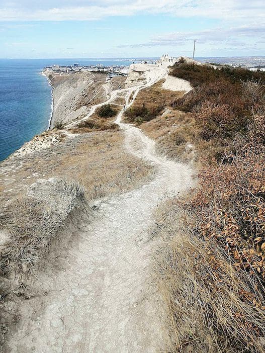 Неспешный подьем по проложенным людьми тропинкам на гору занимает около 1 часа. С каждой сотней метров открывавается вид на город Анапа.