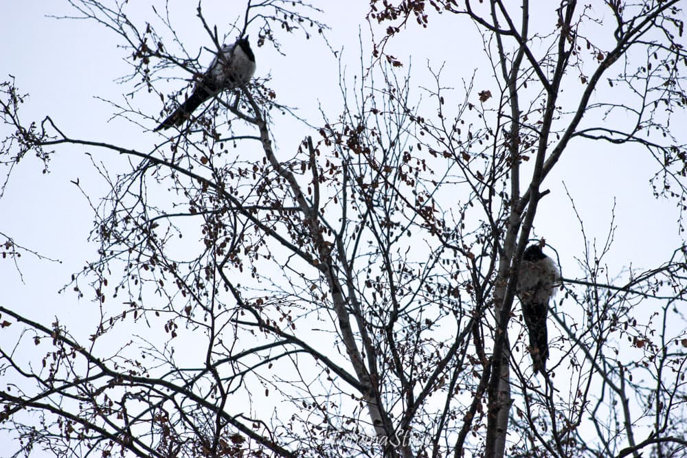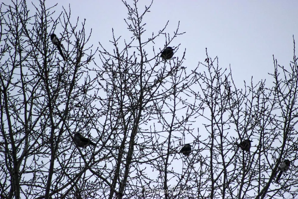 Часто на одном дереве можно увидеть стаю семейства врановых: серых ворон, европейских сорок и воронов.