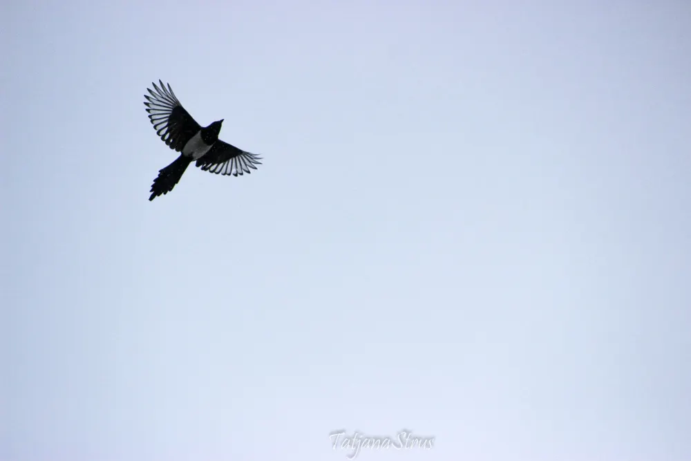 Европейская сорока — зимующая в наших краях птица. Полёт сороки — волнообразный планирующий. На верхушке дерева сорока может уверенно держаться на мелких ветках. В городе имеется несколько мест обитаний этих птиц, которых обычно они придерживаются. Питаются как животными, так и растительными кормами, может кормиться из птичьих кормушек.