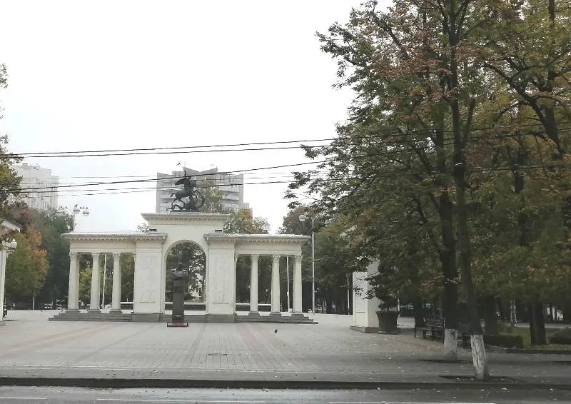Арка с Георгием Победоносцем. На протяжении многих столетий символом и покровителем русского воинства был Святой Великомученик Георгий Победоносец. Именно с его изображением несли знамена российские воины, начиная с князя Владимира Святого и вплоть до 1920 года.