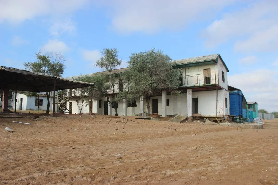 Разрушенные временем здания санаторий стоят на берегу моря.