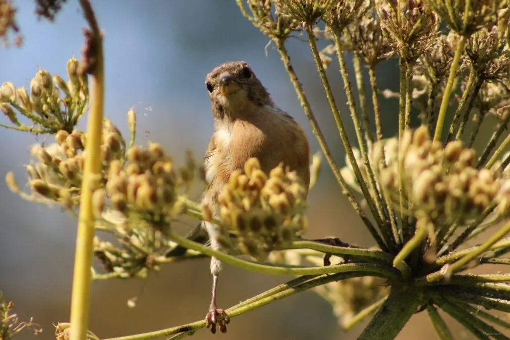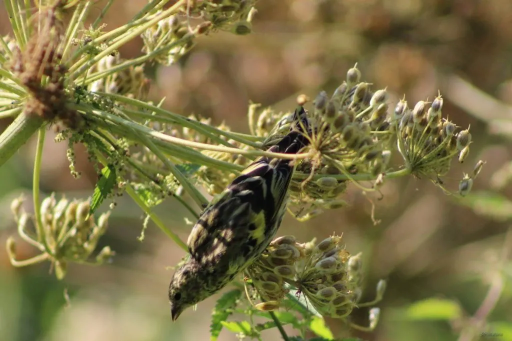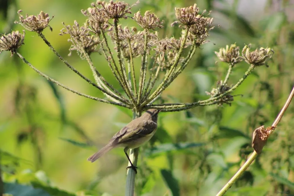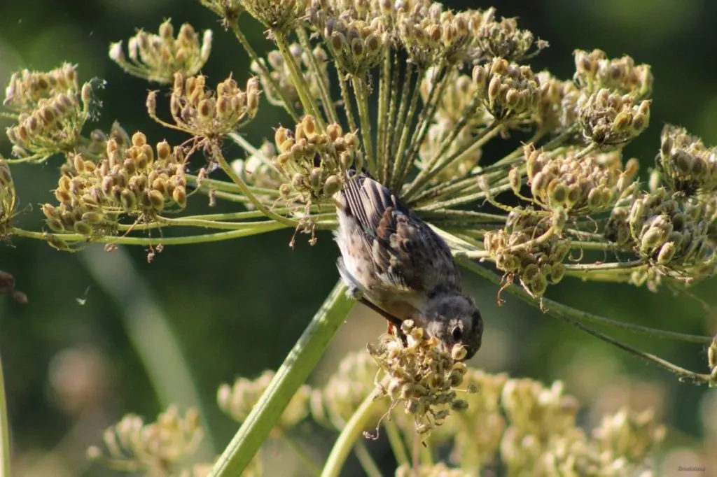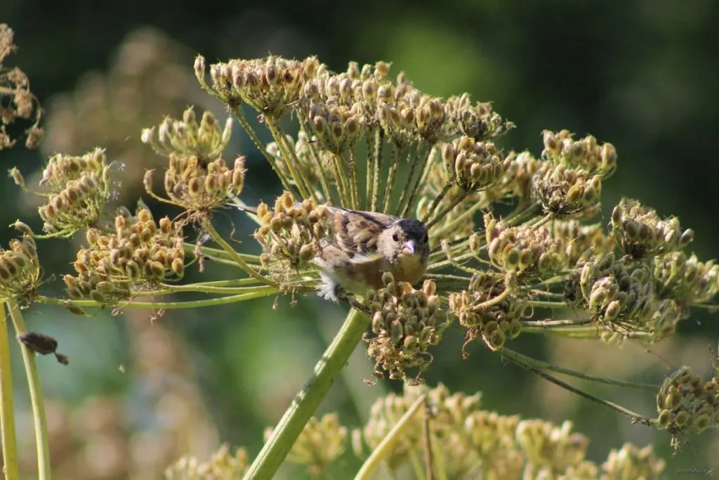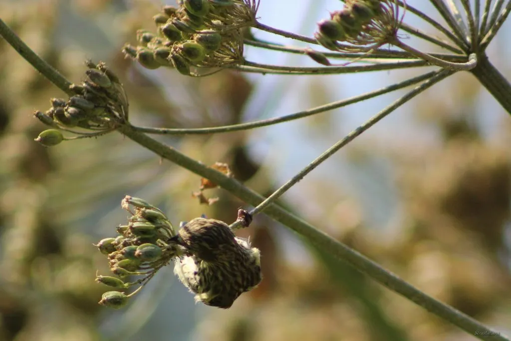 Перелетая с зонтика на зонтик борщевика сосновского юрок склевывал семена этого растения.