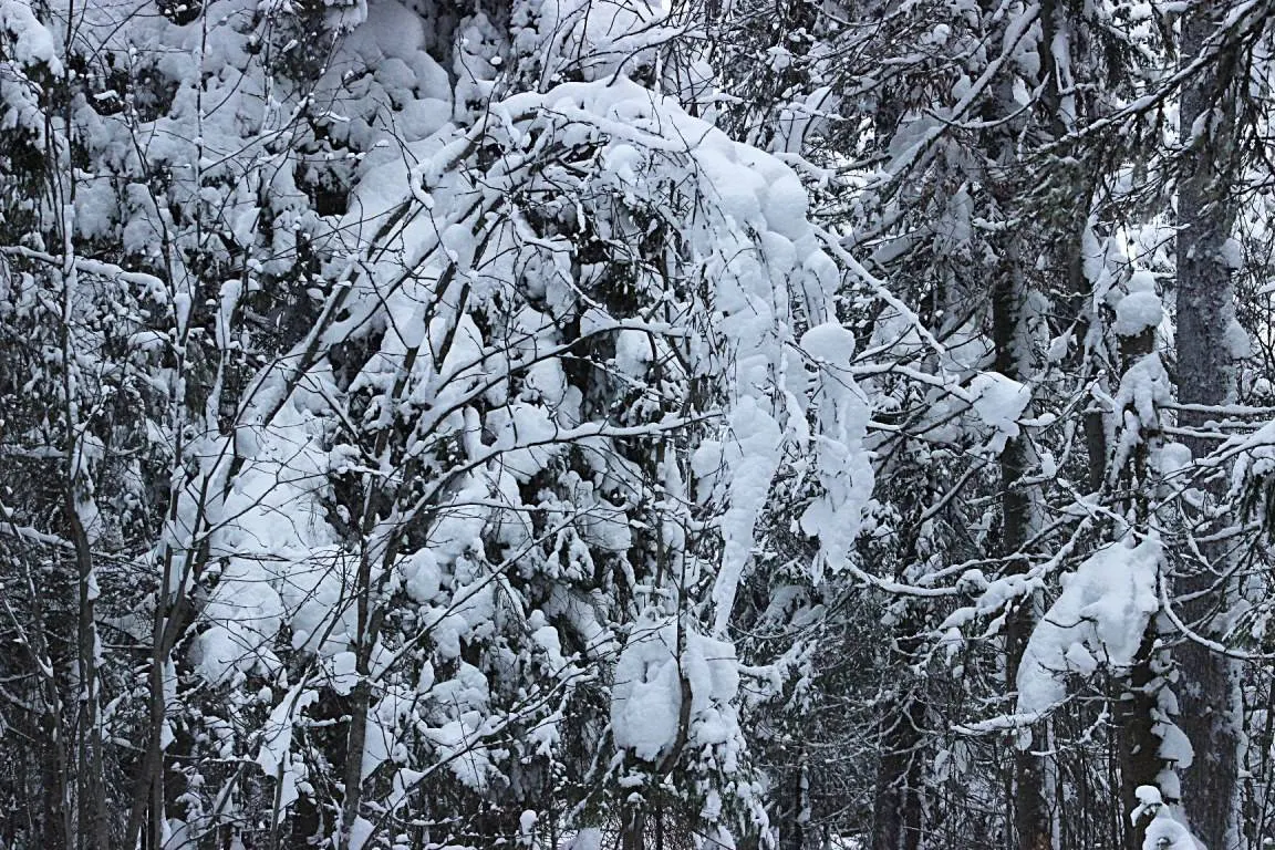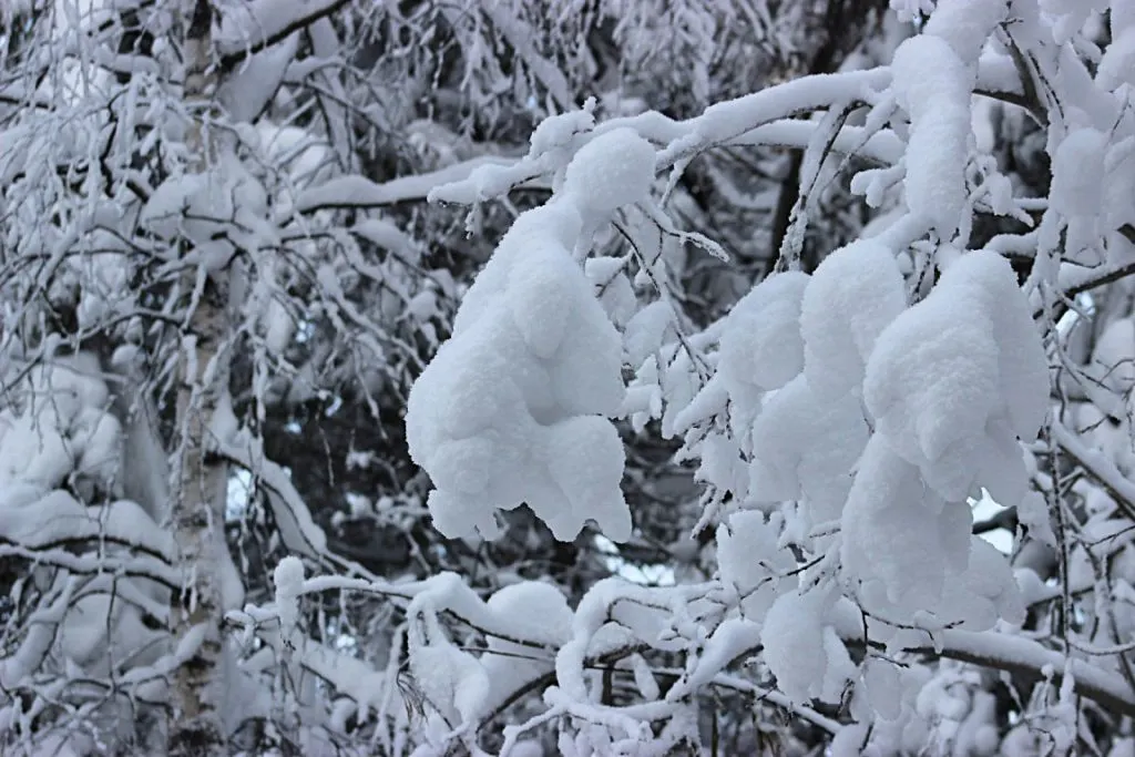 Стряхнёшь такую кухту с дерева и тебя обсыпит снегом.