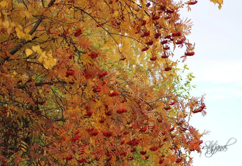 Особенно красива в осенне время рябина обыкновенная своей резной жёлто-оранжевой листвой и крупными красно-оранжевыми соплодиями. Рябина любима в народе и её издавна упоминают в былях, легендах, стихах и сказках.