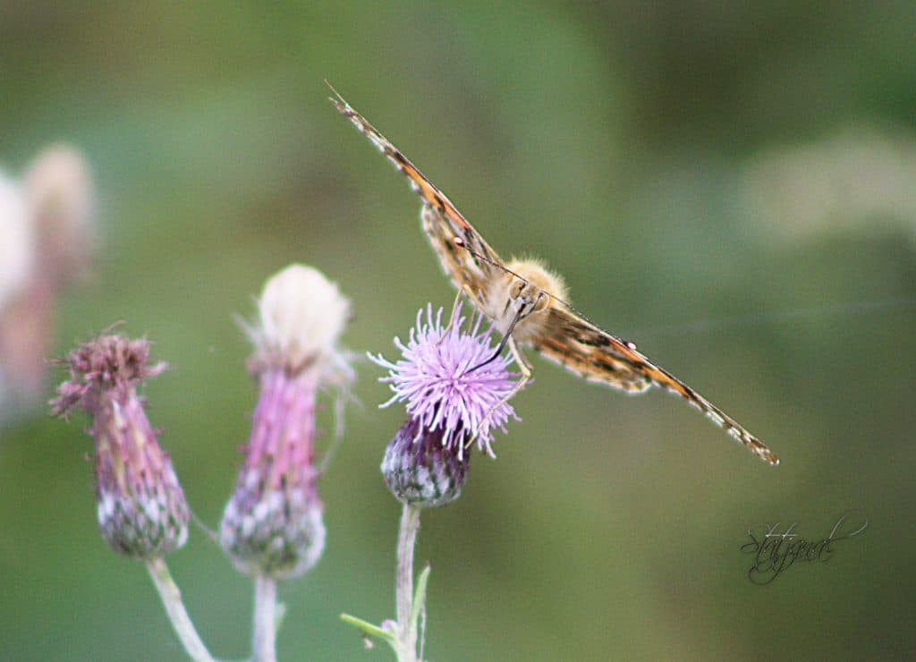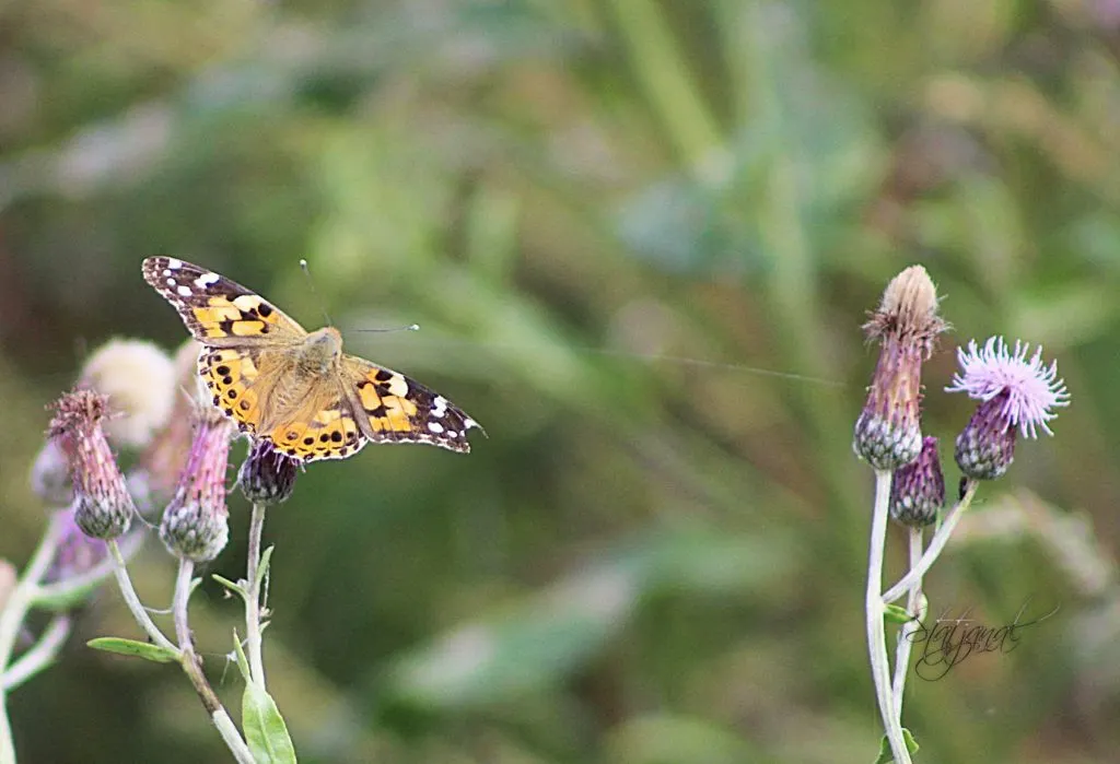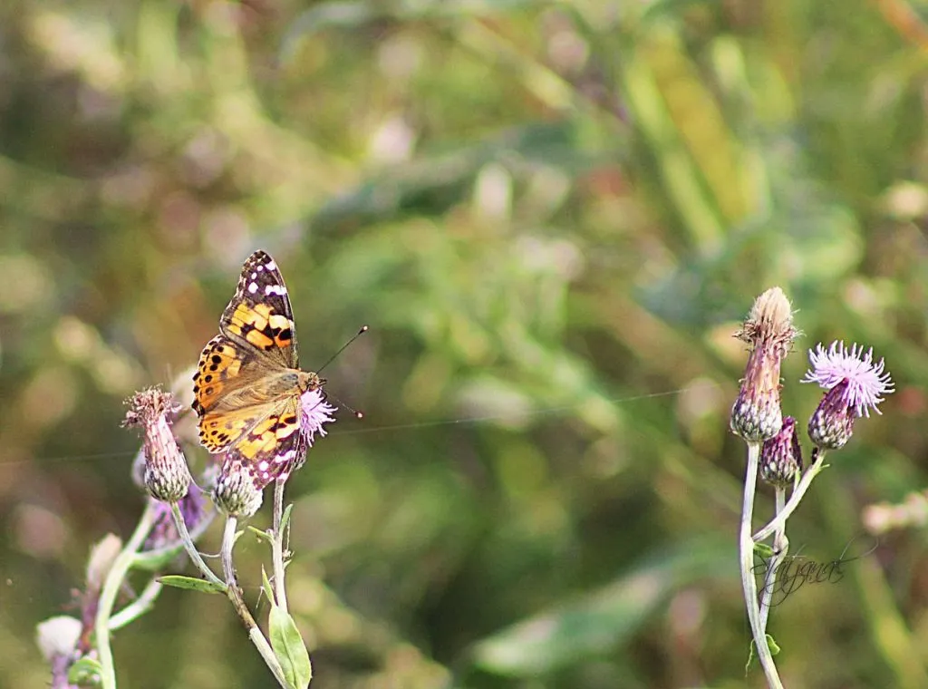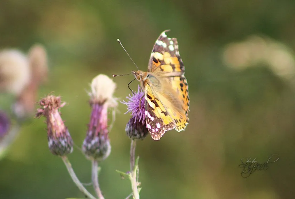 В солнечный день августа можно увидеть оранжевых, с белыми, чёрными пятнами на крыльях, бабочек, летающих на открытых пространствах над растениями семейства астровых. Эта бабочка называется — репейница, или чертополоховка (Vanessa cardui) — дневная бабочка из семейства Nymphalidae.