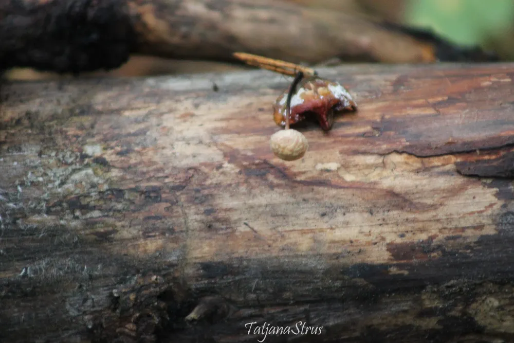 Шляпка: изначально выпуклая, затем становится распростертой, тонкая, гладкая, коричневая, с легким розоватым оттенком в сырую погоду, выцветающая в сухую до кремового, в центре немного темнее. Диаметр шляпки в среднем 0,5–1,0 (до 1,7) см.
