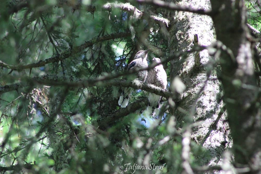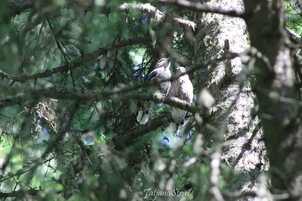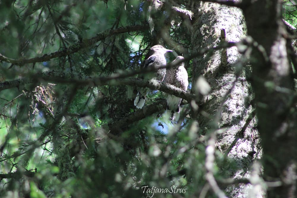 В послегнездовой период сначала кедровки летают семьями.