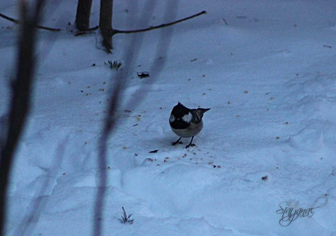 Зимой в поисках пищи могут мигрировать на большие расстояния, питаться из кормушек. В город обычно не залетают.