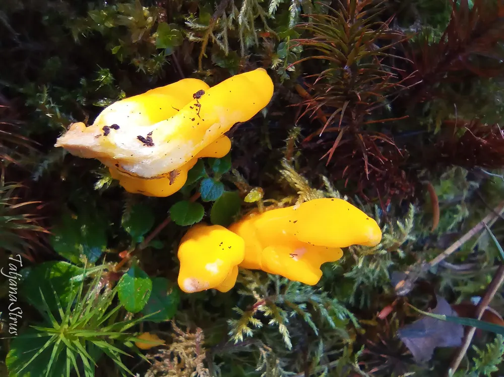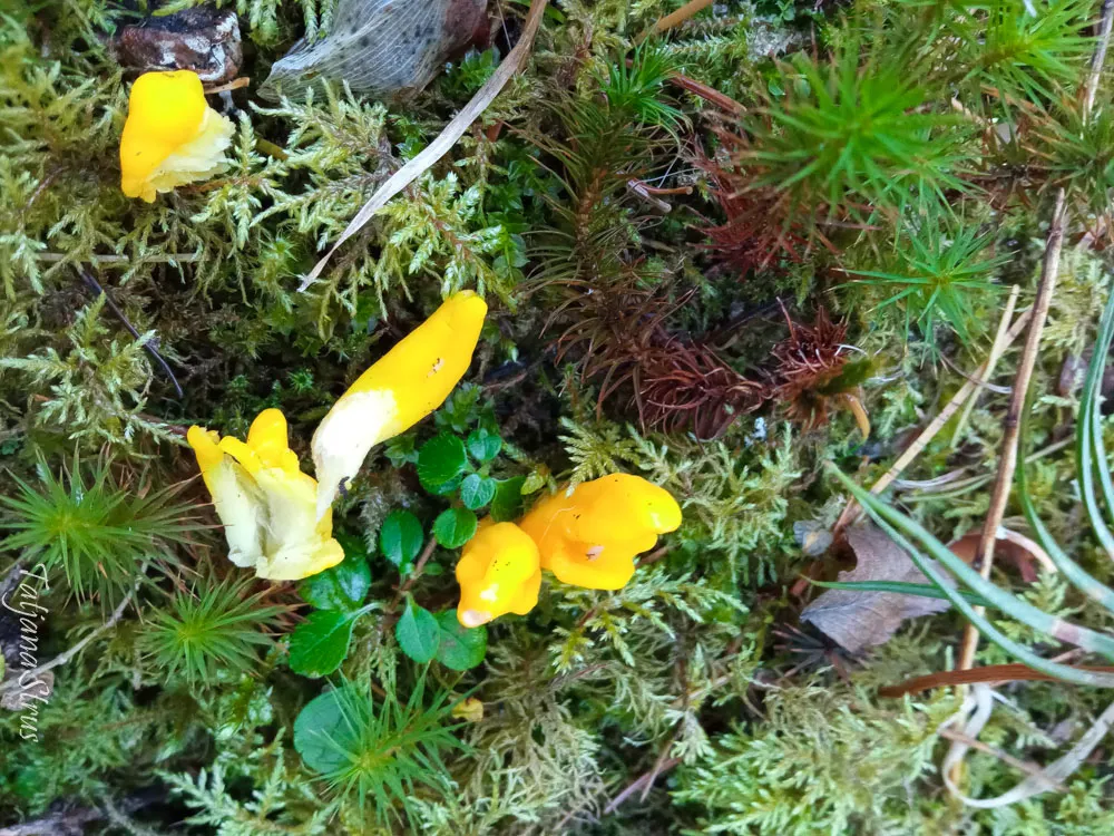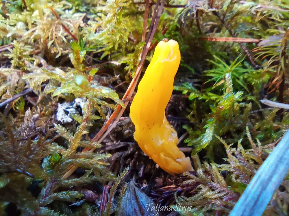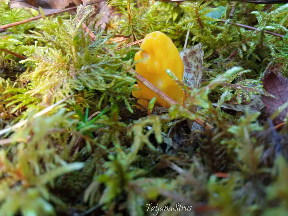 Неолекта желточная редкий вид грибов, обнаруженных в городских лесах на склоне оврага в районе Долины ручьёв.