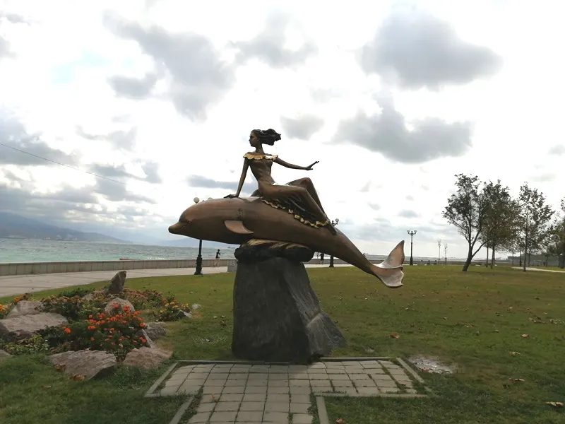 Памятник «Дельфин и русалка». Веселая скульптура украшает набережную имени адмирала Серебрякова, а кто погладит дельфина, тому большая удача будет.