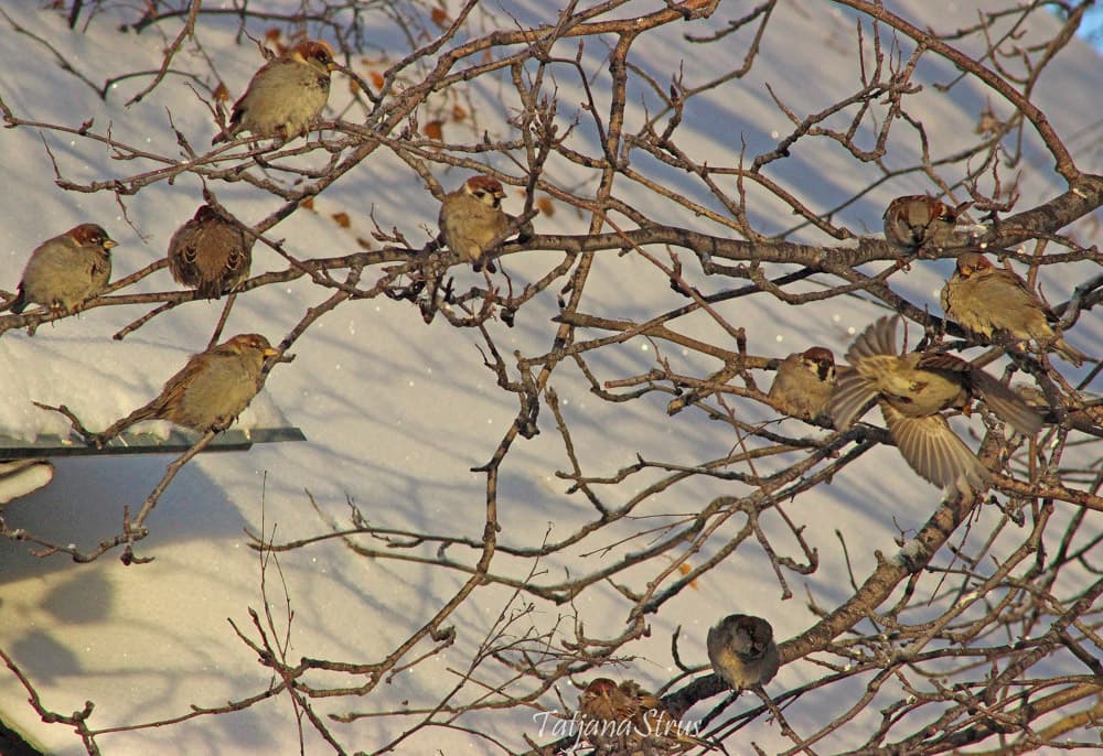 Январские холода, крещенские морозы переживают пернатые в начале года. Разность минусовых температур составляла от -23 до — 45 в начале января. Холода все переживают по-разному: кто-то сбивается в стаи, кого-то спасает теплое оперенье, а кто-то научился искать убежище в строениях человека, но сильные морозы всё равно заметно сокращают численность птиц. Но и сильные холода не страшны птицам, если они в течение северного короткого светового дня отыщут питание.