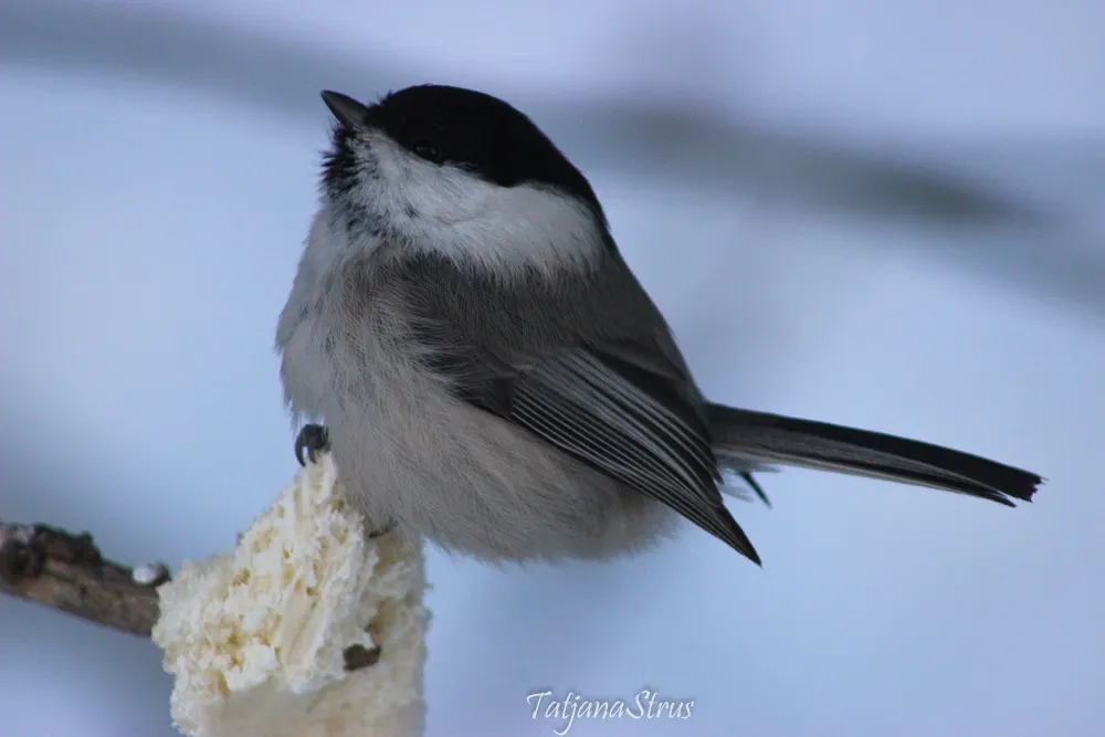 Московка — самая мелкая из зимующих птиц, предпочитает раскрошенные семена подсолнечника, но можно видеть, как она, взяв в клюв семя подсолнечника, улетает с ним на ветку дерева и ловко разделывает его. Московок вижу редко среди стаек зимующих птиц: поползней, пухляков и реже стаек больших синиц.