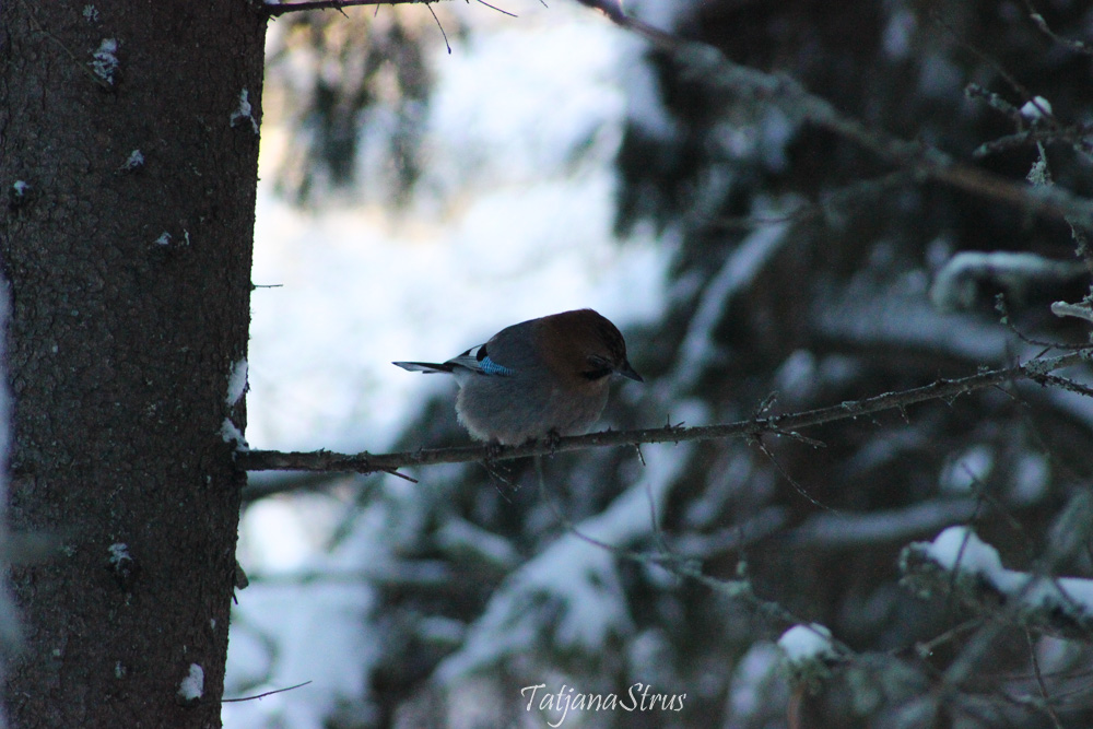 Сойка у кормушек встречается редко, осторожна, пуглива. Из кормушек выбирает хлебные остатки, сухарики, кедровые орехи.
