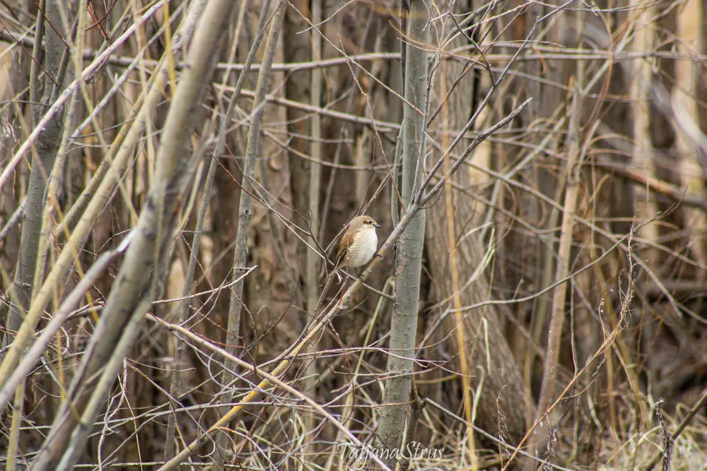 Во время наблюдения за птицами нам, любителям бёрдвотчинга, одному из самых распространенных увлечений в мире, встретилась самка обыкновенного жулана.