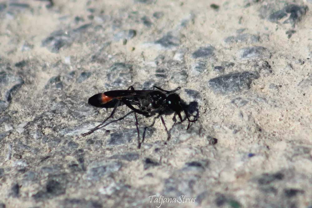 Интересное выкармливание потомства, относится к роду аммофил (Ammophila). Найдя подходящую по размеру гусеницу, она парализует ее и, разорвав кожу жертвы, некоторое время лакает выступившую гемолимфу; затем переносит добычу к норке, открывает ее и втаскивает гусеницу в личиночную камеру. Наконец, на гусеницу откладывается яйцо, и вход запечатывается. Личинка, поедая гусеницу, быстро растет, затем окружает себя коконом, окукливается в нем, а из куколки выходит взрослая особь (имаго), которая прокапывает выход на поверхность.