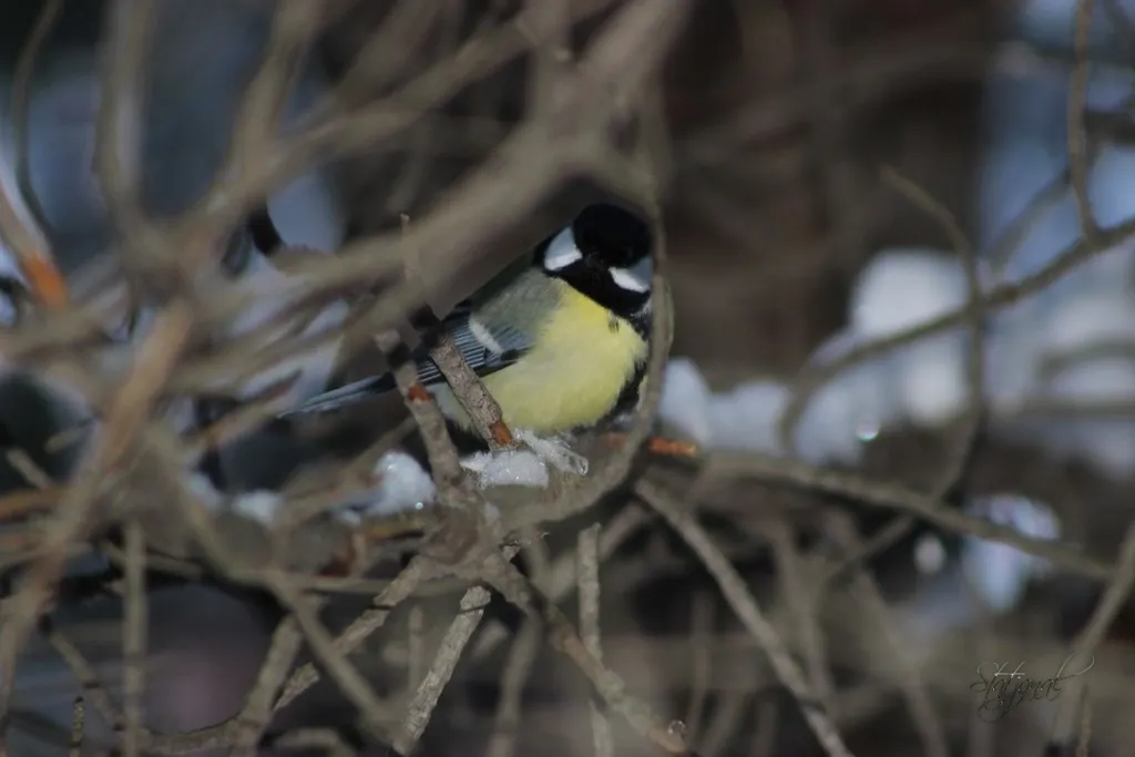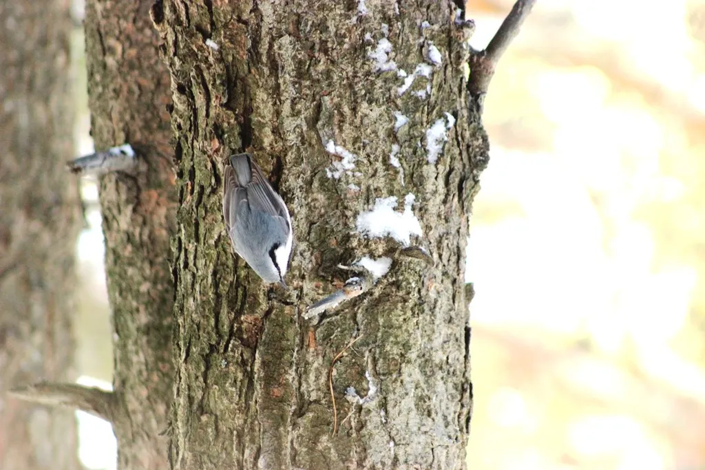 Суровые морозы заставляют всех прятаться в своих убежищах, будь -то человек, звери или птицы. Но, как только, наступает потепление в лесу начинается оживление, особенно заметное по голосам птиц. Особая птичья перекличка наблюдается у кормушек: насыплешь корм в кормушку и тут же прилетает птичка, в это раз — буроголовая гаичка, которая тут-же послала призывные сигналы и сразу слетелись другие мелкие пернатые — корм обнаружен.