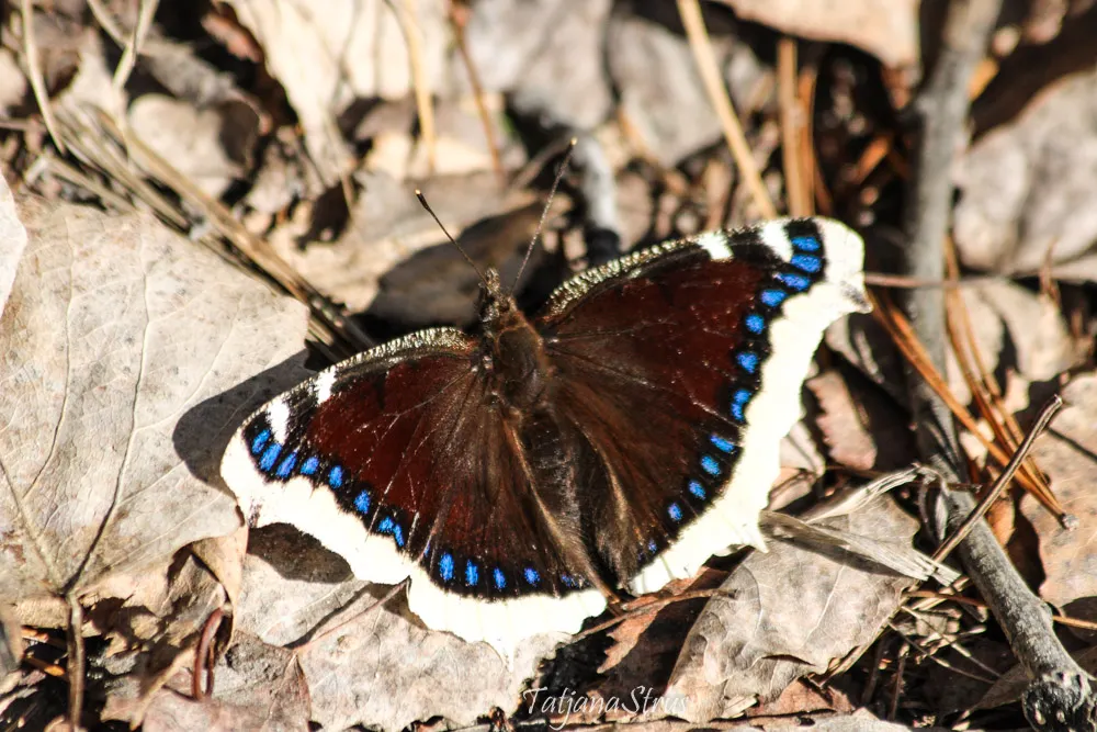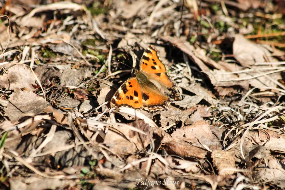 Вчера удалось увидеть сразу двух успешно перезимовавших бабочек: многоцветницу черно-рыжую и траурницу. Обе бабочки сразу после зимовки начинают лёт в апреле, когда ещё погода достаточно холодная.