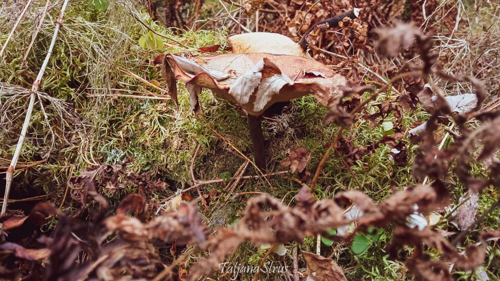 Главным отличием полипоруса черноногого от других трутовиков является тёмно-коричневая, тонкая ножка.