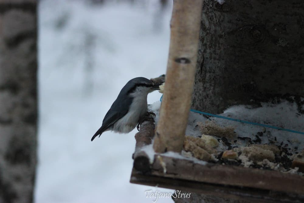 С наступлением холодов все больше птиц начинают посещать кормушки с едой, заготовленные заботливыми людьми. Вот и сегодня у кормушки наблюдала несколько видов птиц. Распугивая других мелких птиц, стремительно, к кормушке подлетает поползень азиатский, выбирает семечко и тут же взлетает, чтоб полакомиться в стороне или припрятать в укромном месте.