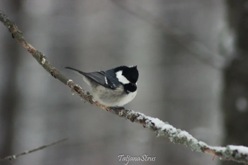 Московка, самая мелкая птичка из зимующих птиц. Но смелости и ловкости в доставании семян из кормушки ей хватает. Подлетает несколько раз с разных сторон к кормушке и, глядишь, улетает с семенем в клюве. Голодной не останется.