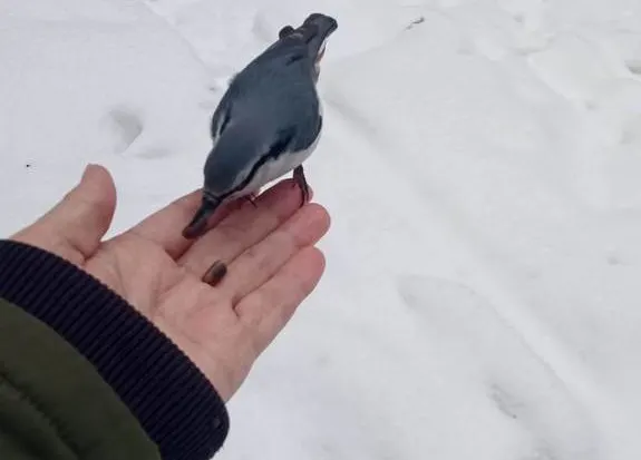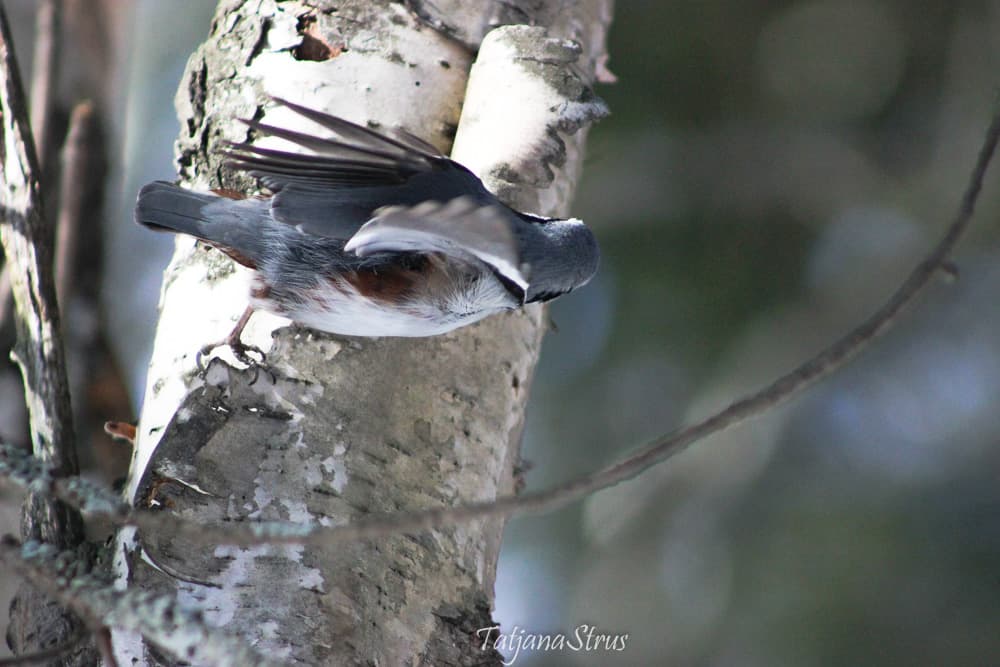 Интересно наблюдать за поползнем подыскивающим место для укрытия корма.