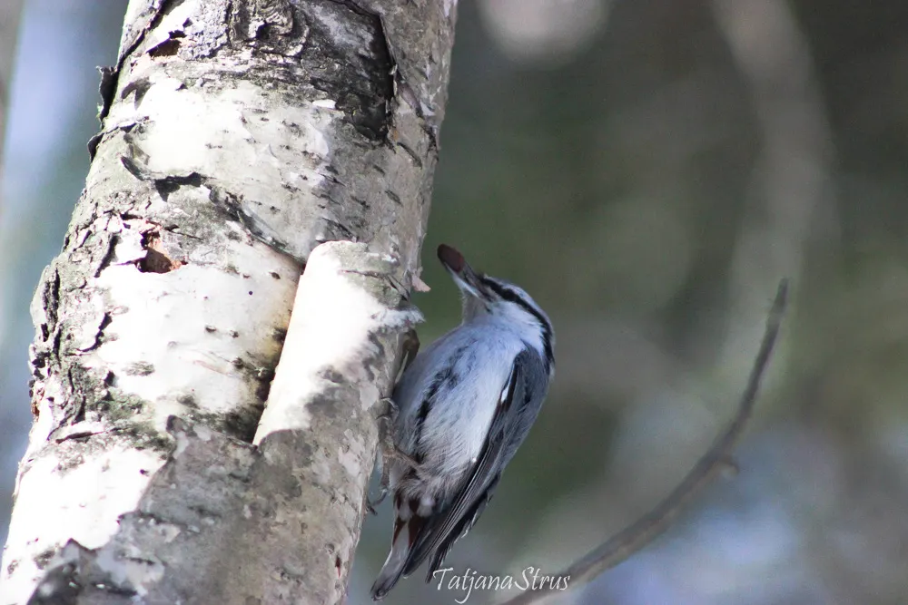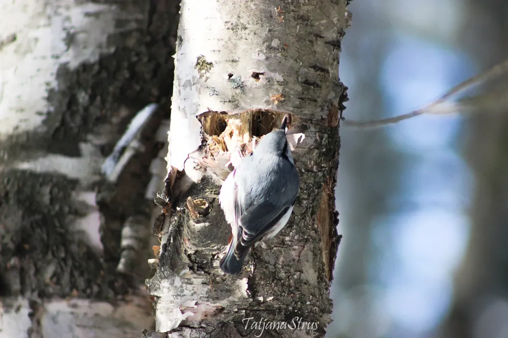 Оставшиеся после долбления берёзы дятлом отверстия обследованы и не подошли для укрытия ореха. Поползень издал недовольные трели и полетел дальше.