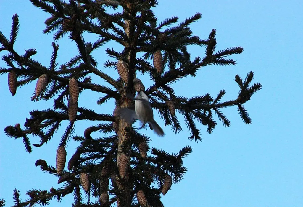 Интересна особенность буроголовых гаичек — для извлечения семени ели зависать, как колибри, рядом с шишкой.