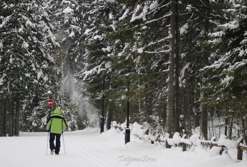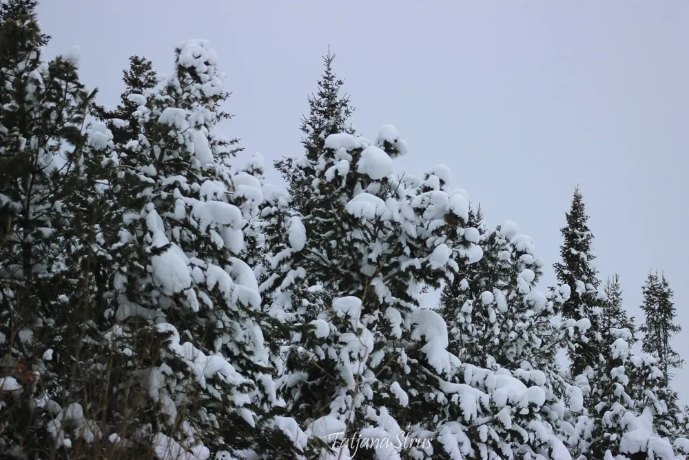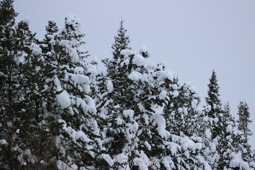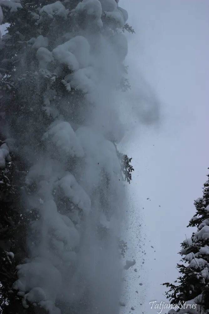 Достаточно было небольшого потепления, небольших порывов ветра и с деревьев начал осыпаться снег. Большие комья снега рассыпались при полете в воздухе и на землю падала снежная пыль.