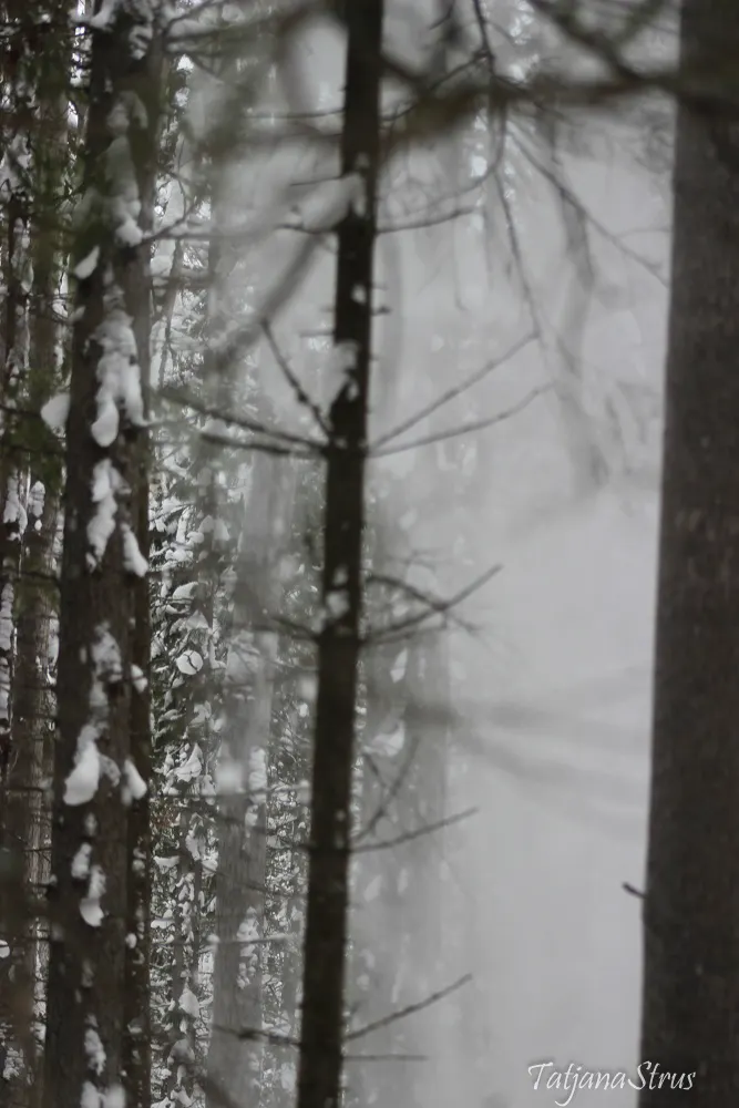 Временами падение снега начиналось одновременно в разных местах леса. Снежные шапки разбивались о ветки, пылились на лету и несколько секунд стояла сплошная снежная пелена.