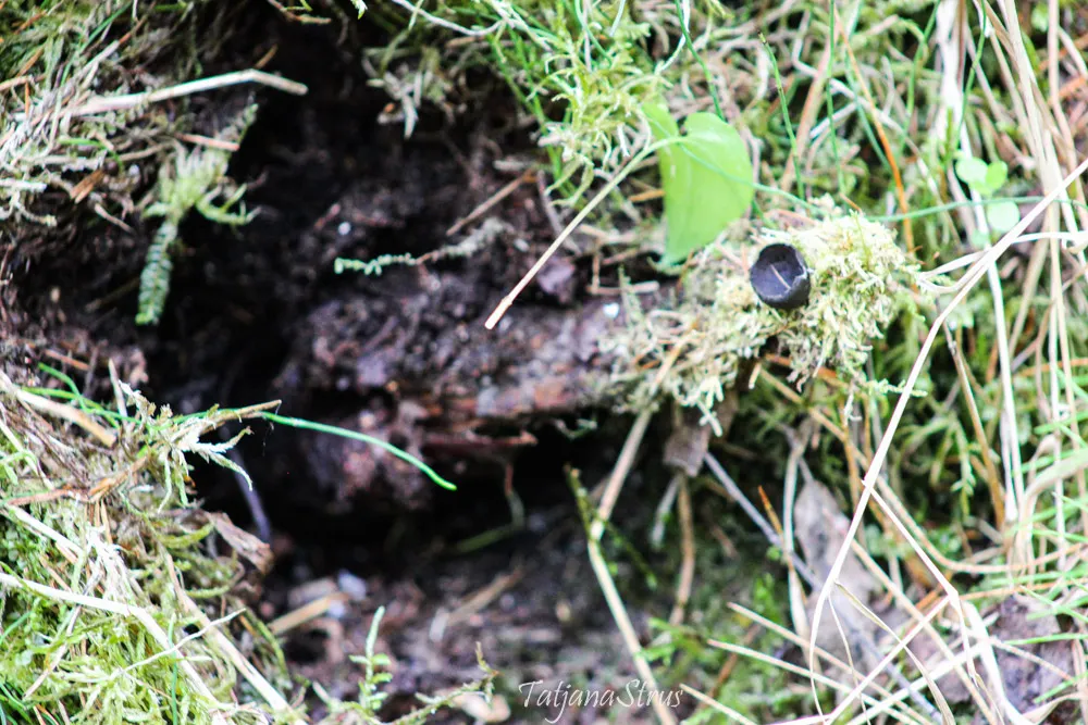 В дебрях городских лесов произрастает во мху на опаде и древесине хвойных Псевдоплектания Чёрная (Pseudoplectania nigrella) семейства Саркосомовые (Sarcosomataceae). Плодовые тела — чашевидные апотеции 3—15 мм в высоту и до 2—3 см в диаметре, лишённые ножковидного выроста в основании. Обычно встречаются группами. Внутренняя поверхность «чаши» (гименофор, диск апотеция) чёрно-коричневая до чёрной, блестящая, внешняя стерильная поверхность матовая от коротких буроватых волосков, чёрная или чёрно-коричневая.