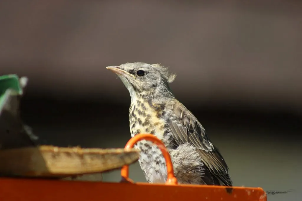Этот молодой дрозд уже хорошо летает, но все ещё нуждается в помощи взрослых для охранения и для прокорма.