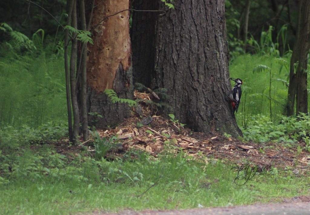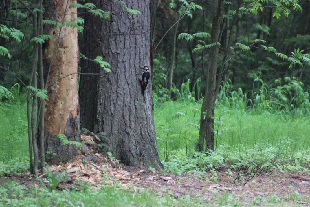 Даже увлечённый занятием дятел не терял бдительности.