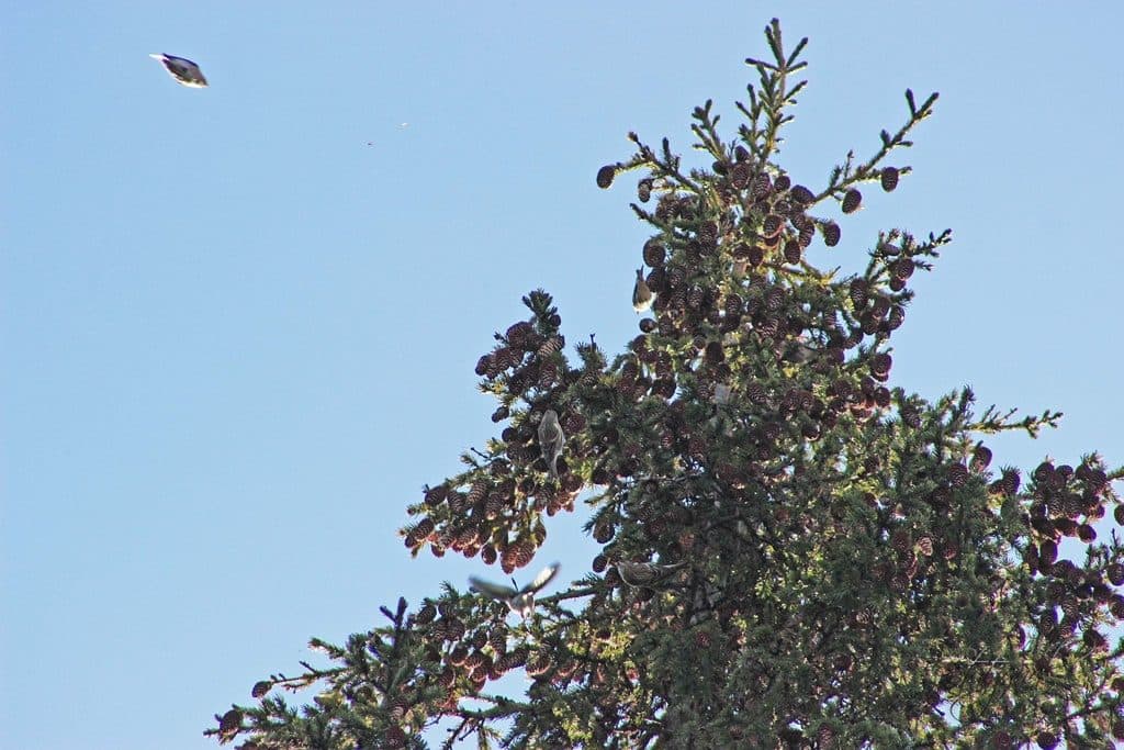 К этому времени чешуйки шишки отходят от стрежня и поспевшие семена ели плавно вращаясь падают на землю. Чечётки прилетели кормиться семенами шишек ели обыкновенной. Клюв чечеток хорошо приспособлен к доставанию семян из узких щелей, будь то в шишках ели, сосны, лиственницы или в мелких «шишечках» — ольхи и др. Урожаи семян хвойных, а также берез и ольхи играют большую роль в определении зимовок, чечётки мигрируют в поисках лесов с хорошими урожаями семян.