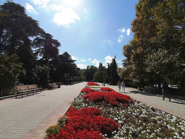 На Набережной Севастополя расположен парк с красивыми клумбами, различными видами растений.