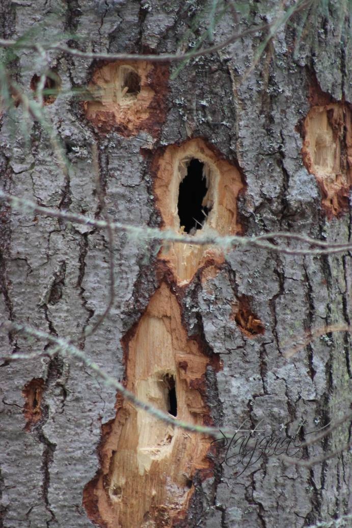 К таким деревьям на помощь приходят дятлы, которые продалбливают отверстия в коре, древесине и извлекают оттуда насекомых и их личинок.