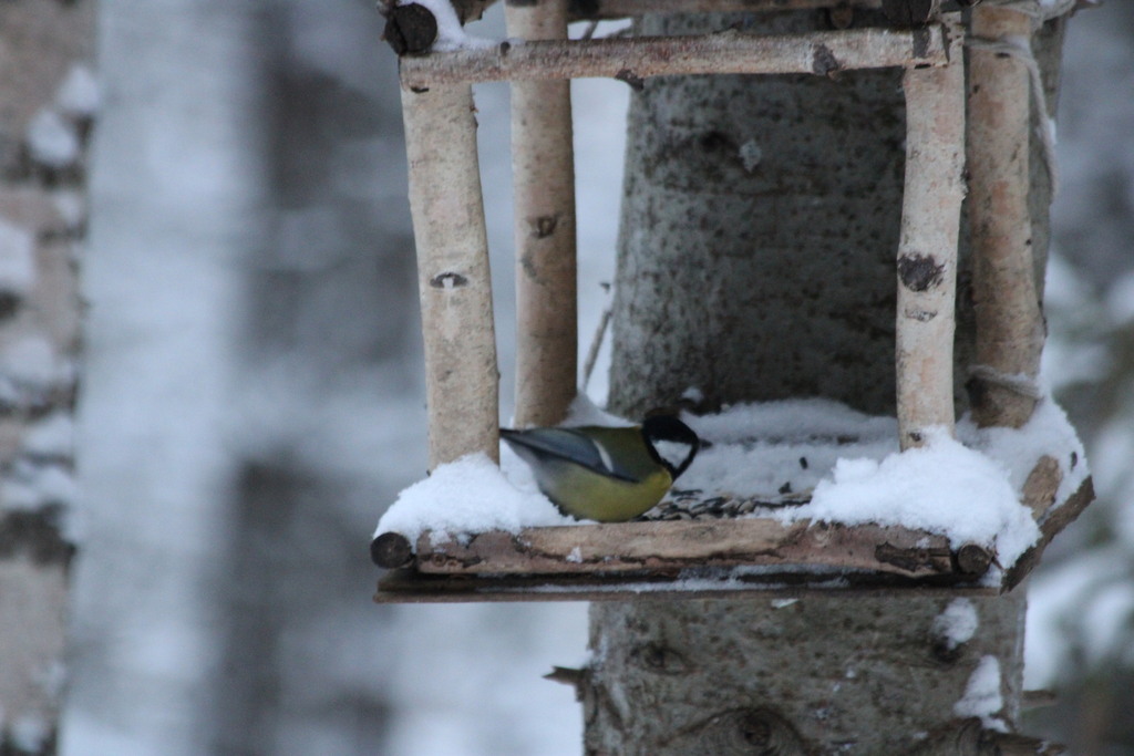 Кормушка пережила несколько сезонов подкормки птиц. Вокруг места кормления постоянно обитали птицы, некоторых даже по определенным признакам мы узнавали.