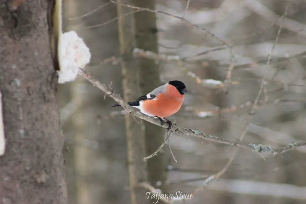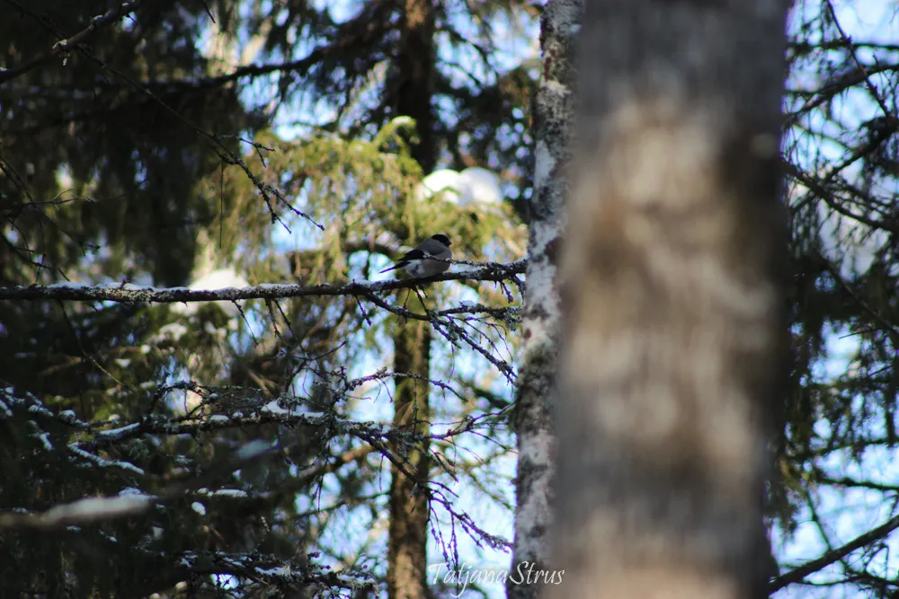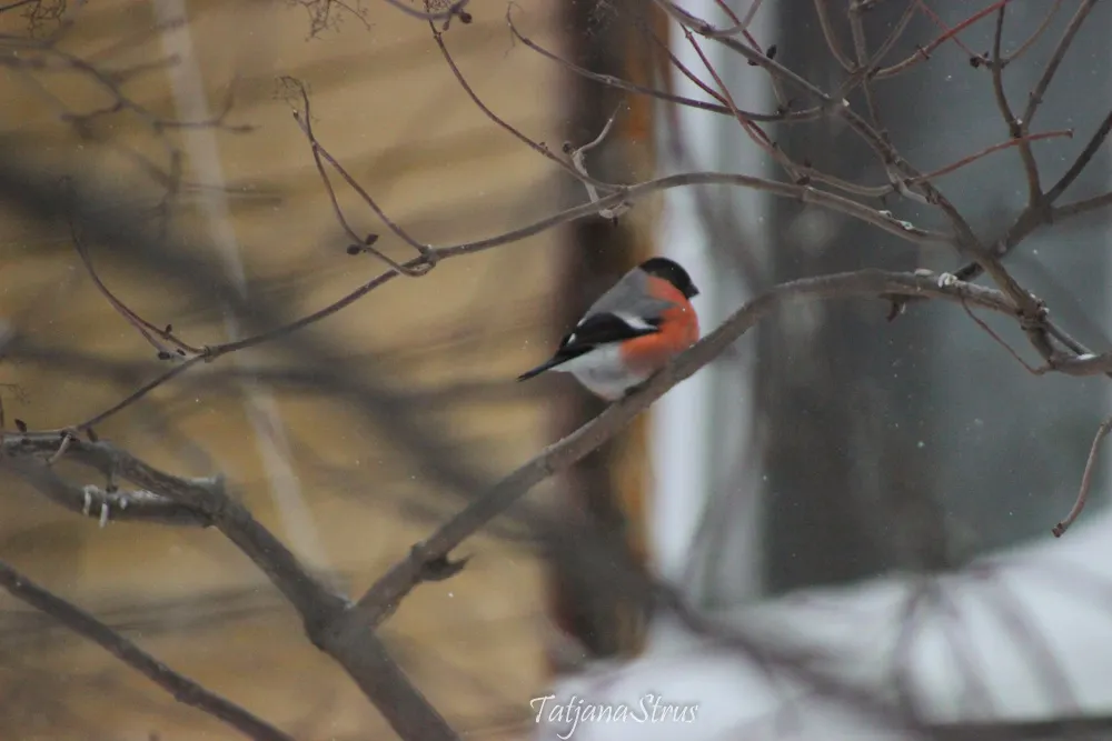 На окраине городских лесов и города Ханты-Мансийска находится несколько пар снегирей (Pyrrhula pyrrhula).