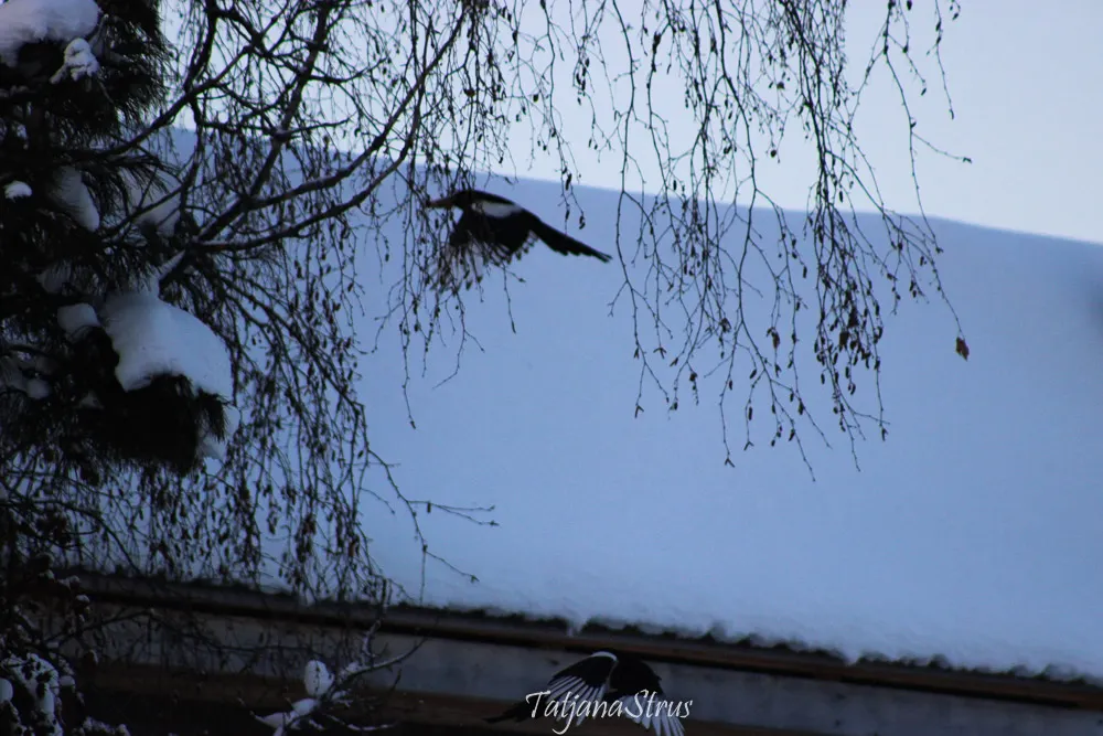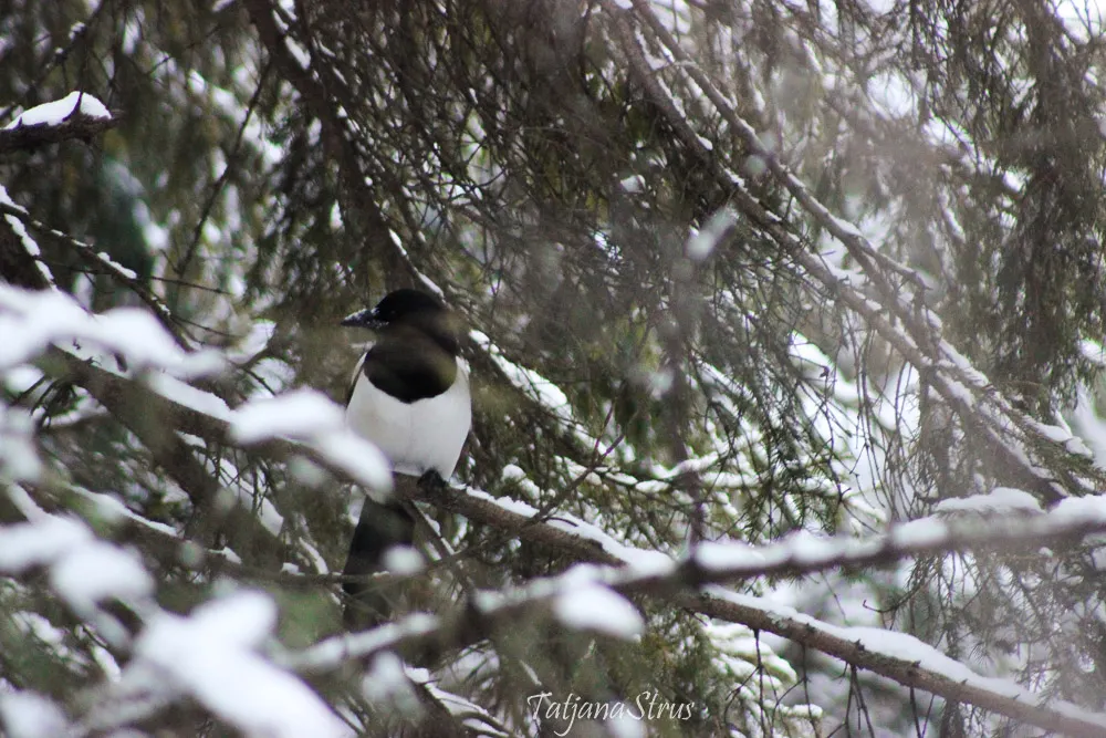 Из-за контрастной окраски оперения, черного и белого цветов, сорока хорошо заметна, как на деревьях, так и среди снега.