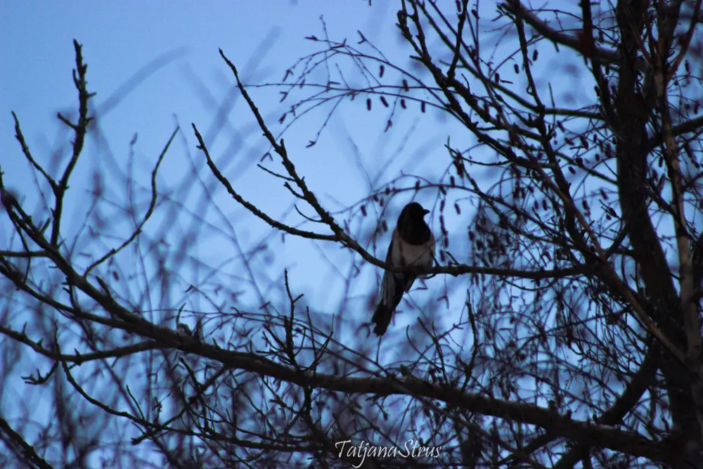 Обычно сорок видишь одиночно, но, однажды, удалось увидеть на берёзе более 10 сорок, хотя они и держались друг от друга в отдалении, на соседних ветках.